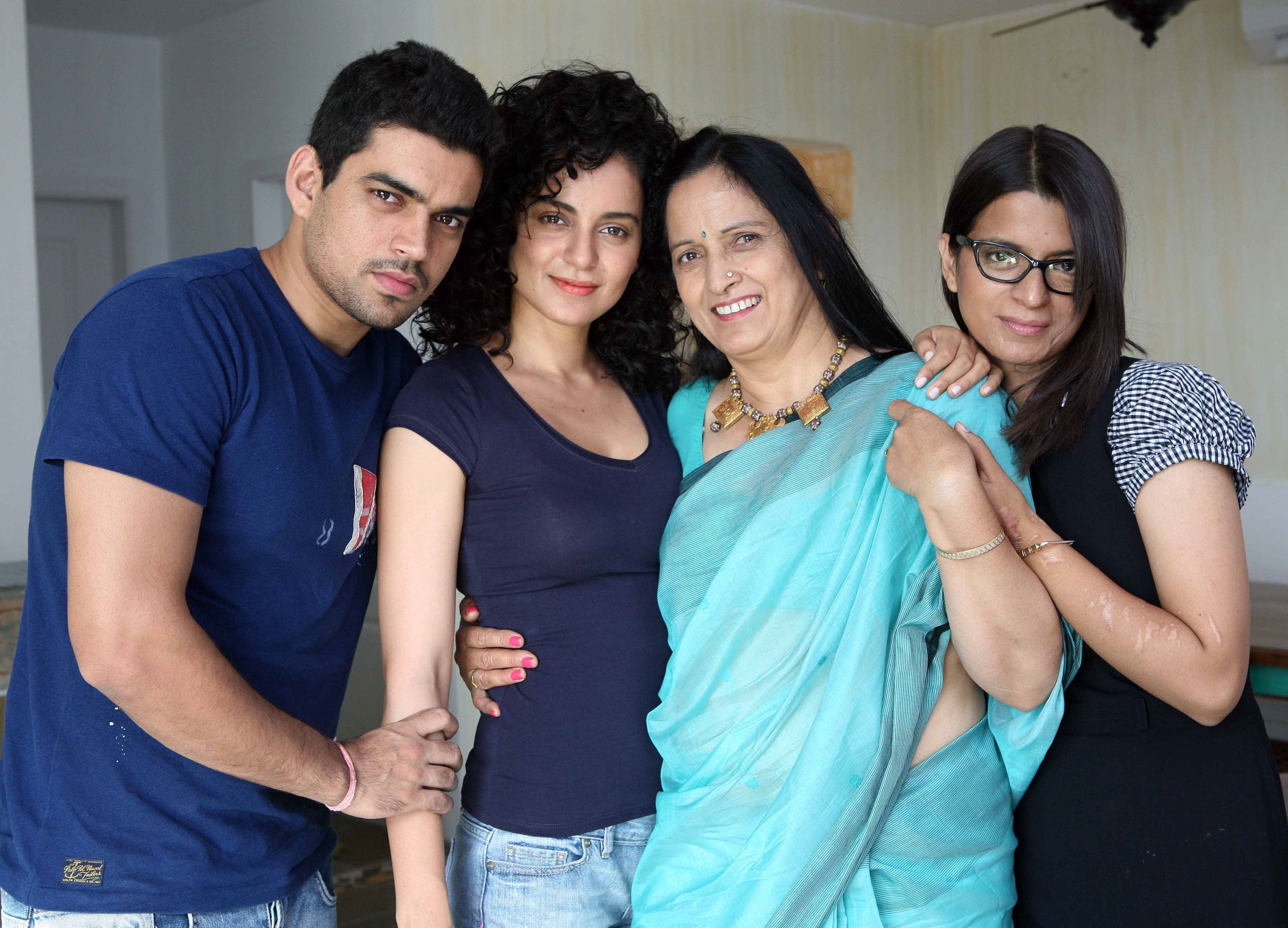 Kangana Ranaut& family: Kangana Ranaut saw posing with mother Asha, sister Rangoli and brother Akshit Ranaut.