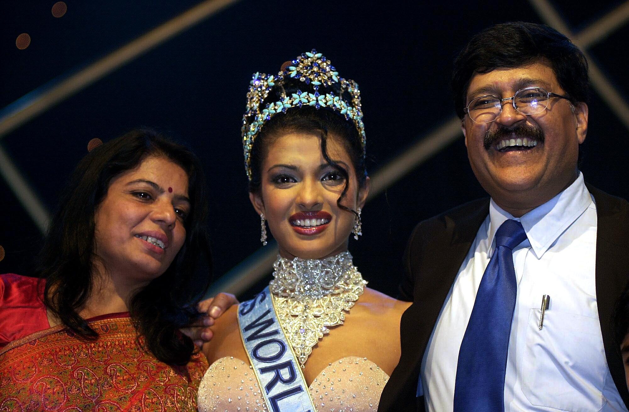 Priyanka Chopra & family: Priyanka Chopra is posing with Ashok Chopra and Madhu Chopra, at The Millennium Dome, London.
