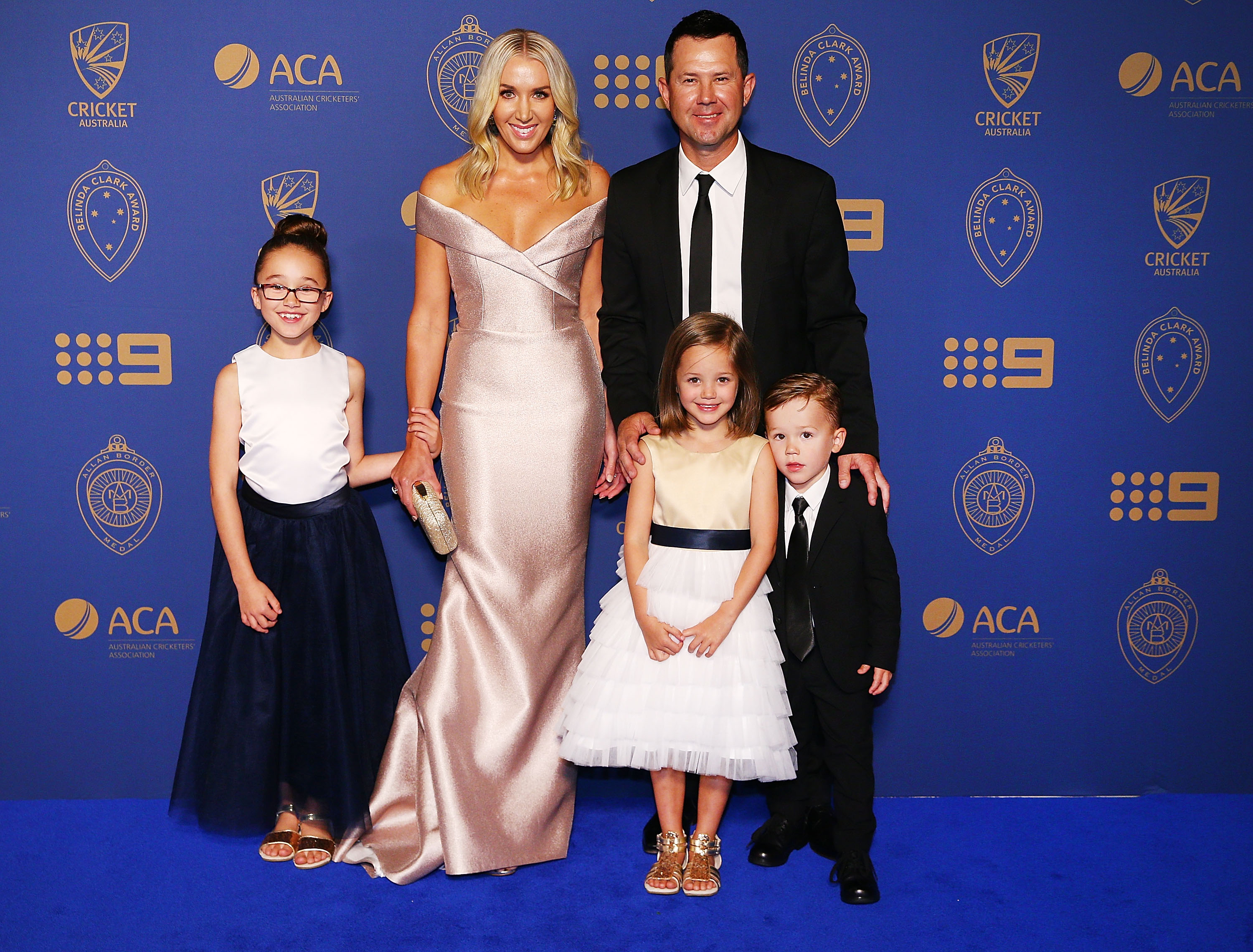 This picture is of Australian cricketer Ricky Ponting with his family including wife Rianna, daughters Emny and Matisse and son Fletcher at the Allan Border Medal award.