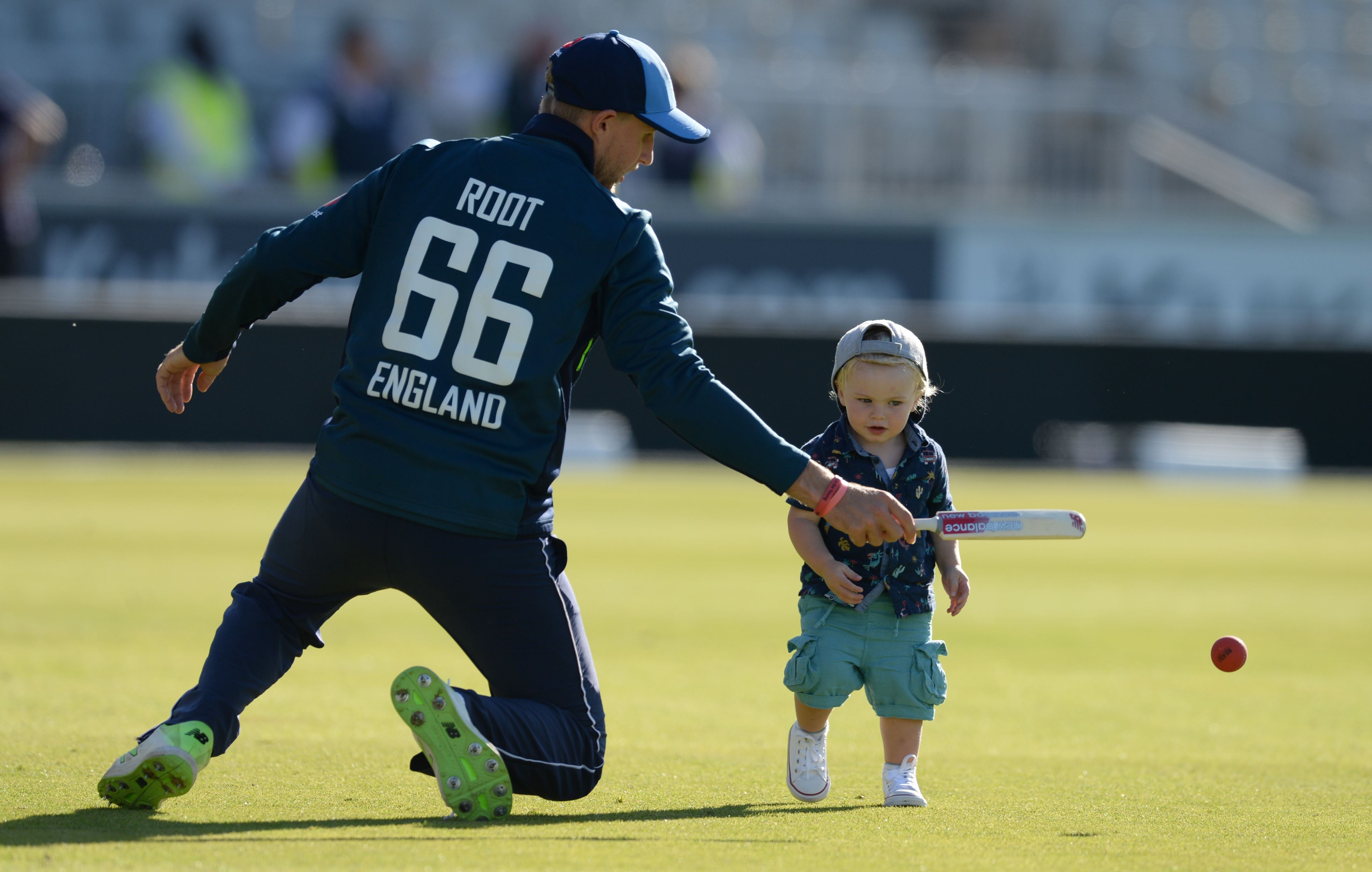 England’s cricketer is on the field playing with son Alfred at Emirates Old Trafford cricket ground in Manchester.