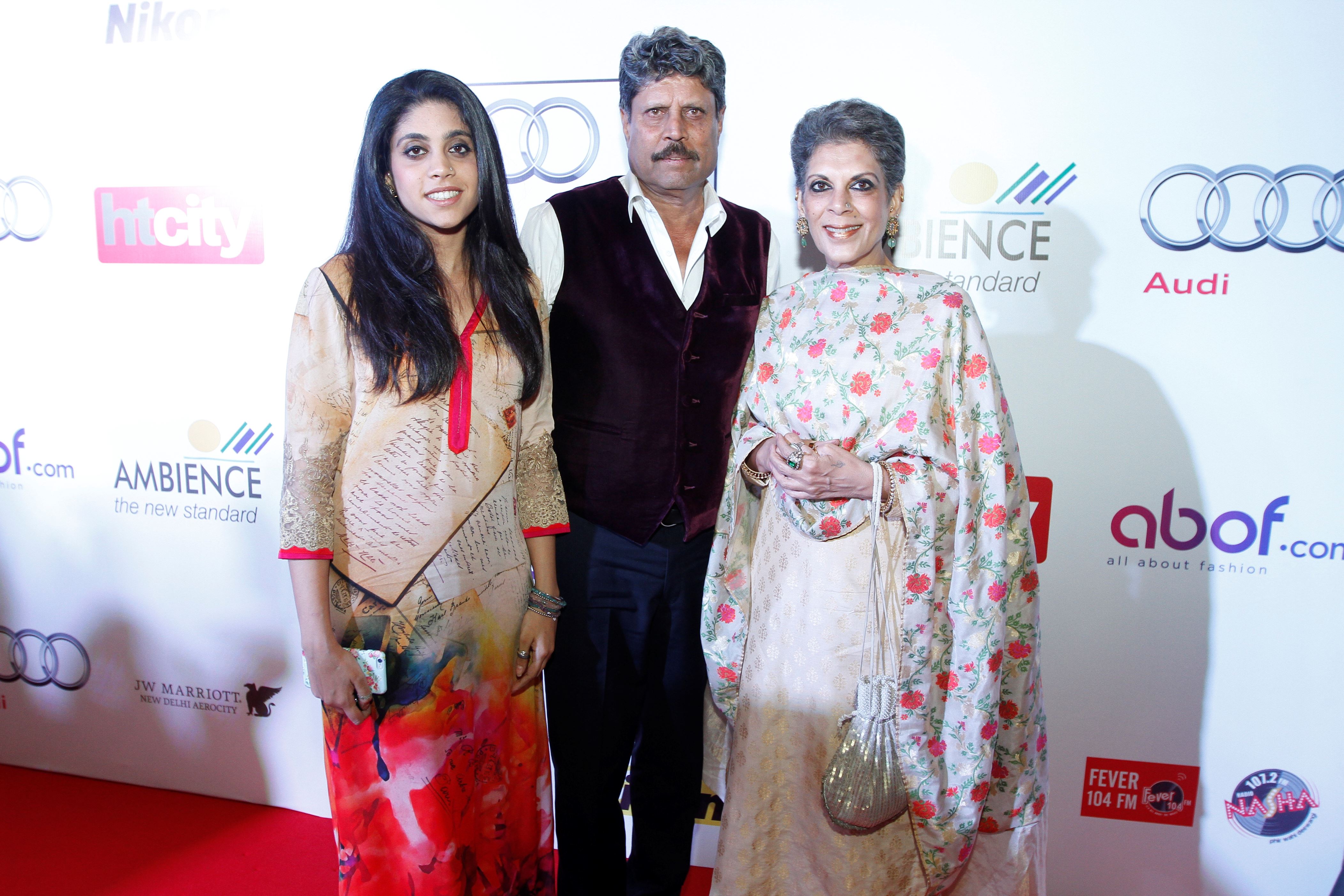 Former Indian cricketer and captain of World Cup winning team Kapil Dev is with wife Romi Bhatia and daughter Amiya.