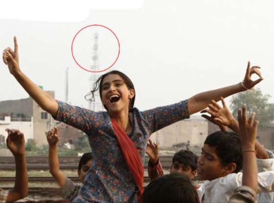 Bhaag Milkha Bhaag: The same mistake. A mobile tower is visible behind Sonam Kapoor but the film is based in 60s.